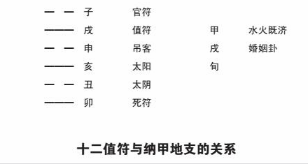 又甲戌旬甲戌为值符,寅为官符,卯为死符,辰为破碎,这三字代表春。丑为太阴,寅为官符,证明(子水)坎丈夫合太阴为婚恋,寅为官符暗合丑证明他已作了别人的官人(太阴又为桃花),同时丑寅值官符证明官方给孩子上了户口,小孩子已被社会接纳诞生在世了。